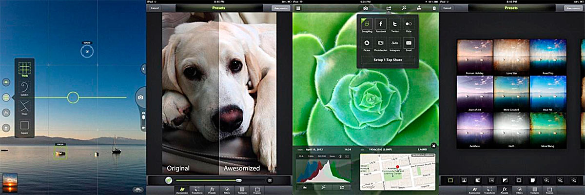 Are you seeking for a professional analog of Photoshop? Then stop here, follow the link and read about Photoshop Touch for iPhone and Android. There are paid and free versions of the application. You can use 10 frames, 10 filters, and the functions of adjusting the exposure, brightness/contrast, saturation, and color tones for free.