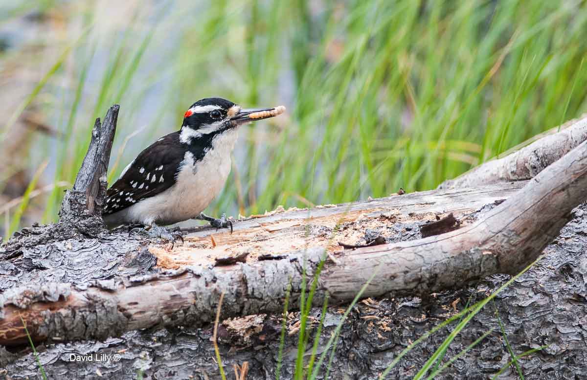 Nothing staged, Hairy Woodpecker with food that he found in the log.