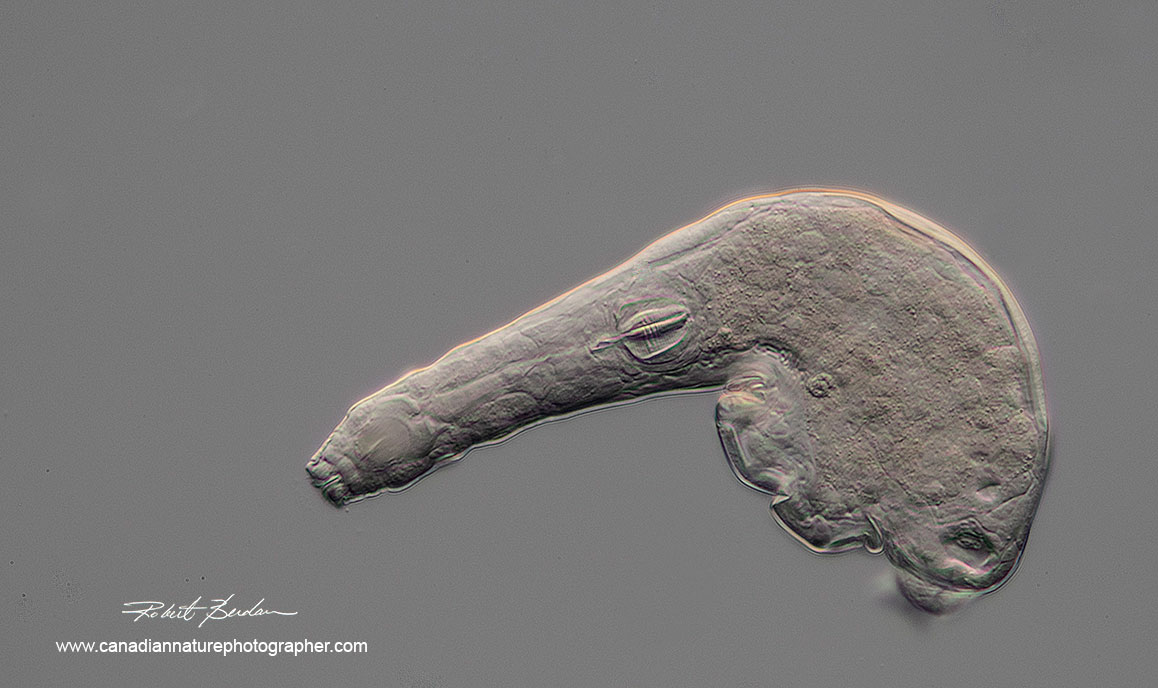 My goal is to inspire more interest in Rotifers, Microscopy, and Photomicrography. I believe all organisms are worthy of close inspection. The study of any organism can lead to discoveries that can have an important impact on our knowledge and lives. As a nature photographer I have photographed birds, mammals and a variety of plants for decades but the diversity of species found in a small drop of water continues to amaze me. Rotifers can also be purchased at some aquarium stores, online (e.g. Boreal Science supply) and they can be useful models for teaching biology in classrooms. If you become interested in pursuing microscopy and photomicrography feel free to contact me for free advice. I also provide instruction, offer presentations on the "Microuniverse" locally and usually have a few used microscopes for sale or I can point you to where you can purchase a new microscope. Microscopy is a hobby anyone can enjoy at almost any age and all year long. In winter I keep a small fresh water aquarium so I can collect and view specimens in any season. If you own a microscope you will never run of out exciting things to explore and look at it. RB