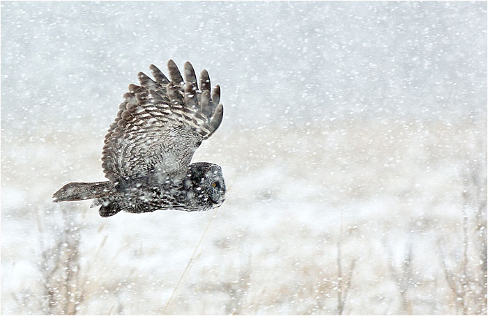 Great Gray Owl in snowstorm Magpie Tundra swans Common snipe