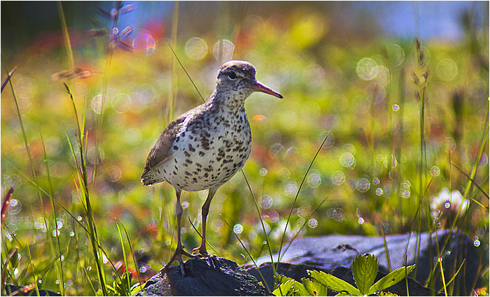 American Avocet, Marbled Godwit and long-billed Dowitchers Spotted Sandpiper Great Horned Owl in barn window Male Spruce Grouse
